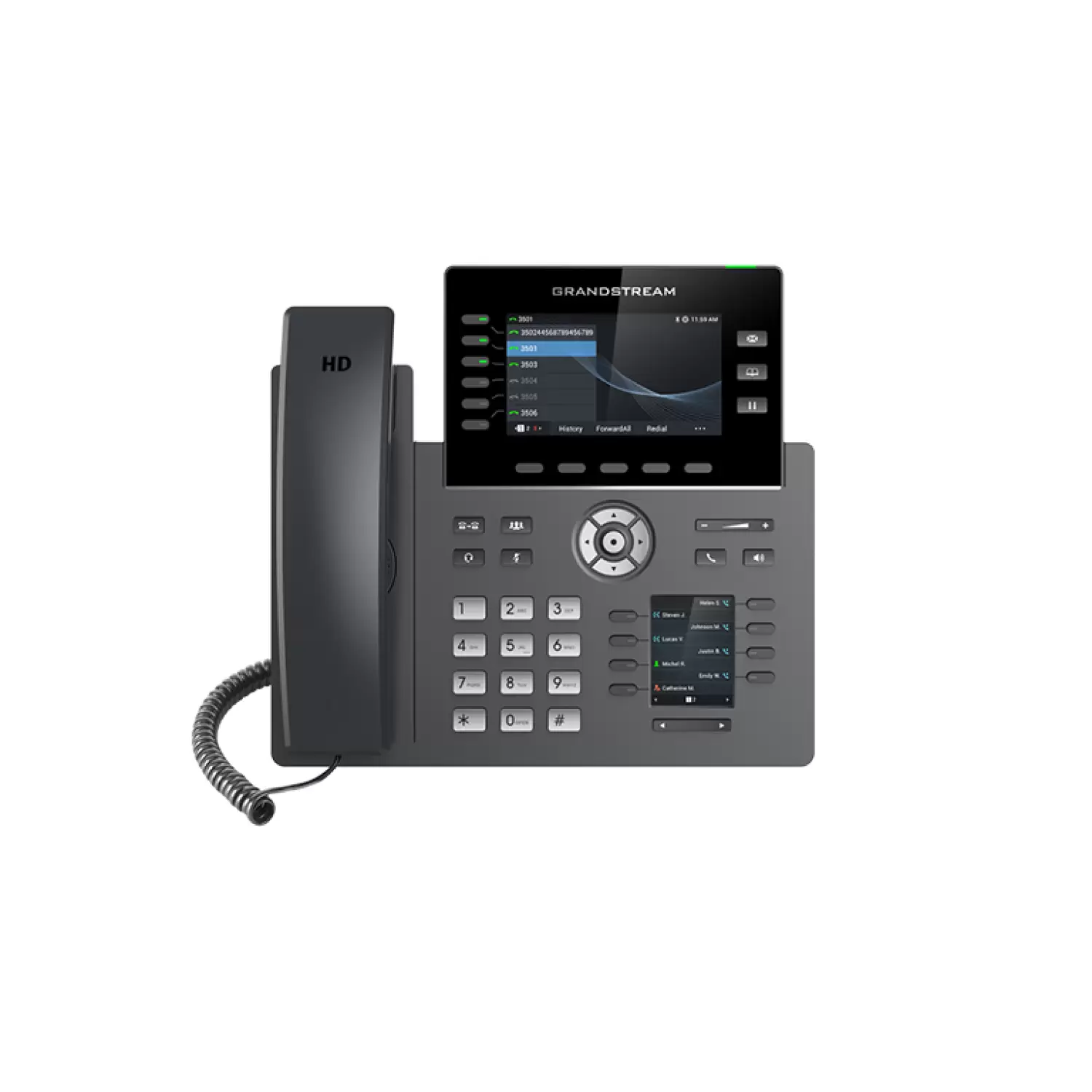 Το GRP2616 είναι ένα τηλέφωνο IP υψηλής ποιότητας, σχεδιασμένο με μηδενικό άγγιγμα για μαζική ανάπτυξη και εύκολη διαχείριση. Υποστηρίζει 6 γραμμές και 6 λογαριασμούς SIP ενώ διαθέτει κομψή σχεδίαση και μια σουίτα λειτουργιών επόμενης γενιάς, όπως ενσωματωμένο Wi-Fi, υποστήριξη Bluetooth, 48 εικονικά κλειδιά πολλαπλών χρήσεων (MPK), διπλές θύρες Gigabit και άλλα. Αυτή η συσκευή διαθέτει έγχρωμη οθόνη LCD 4,3 ιντσών με εναλλάξιμες πλάκες προσώπου για εύκολη προσαρμογή του λογότυπου και επιπλέον οθόνη 2,4 ιντσών. Για την παροχή cloud και την κεντρική διαχείριση, το GRP2616 υποστηρίζεται από το Σύστημα Διαχείρισης Συσκευών της Grandstream (GDMS), το οποίο παρέχει ένα κεντρικό interface για τη διαμόρφωση, την παροχή, τη διαχείριση και την παρακολούθηση των αναπτύξεων των τερματικών σημείων Grandstream.